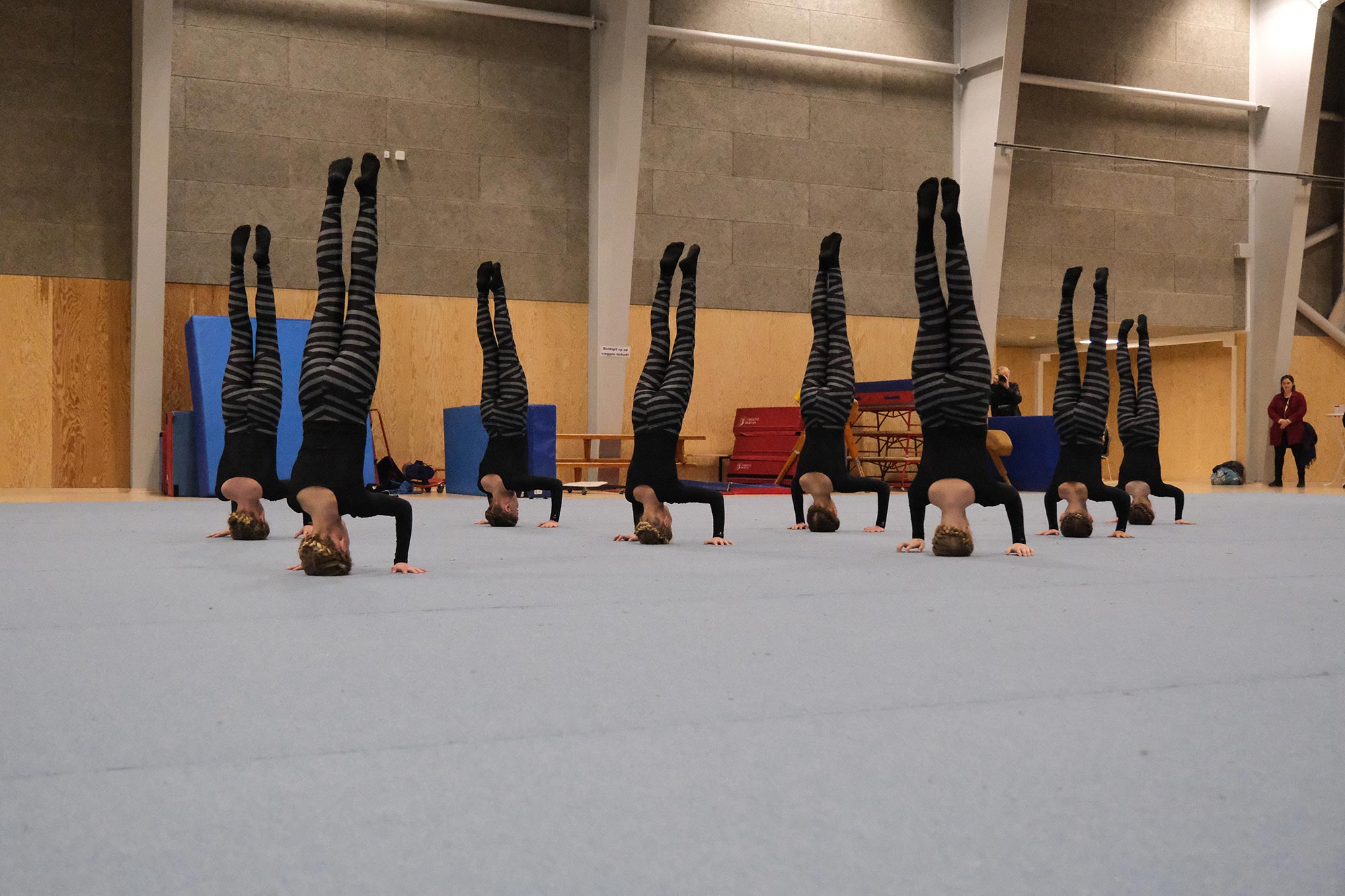 Det er til hver en tid trænerne som beslutter inddelingen af gymnaster samt hvilken række holdet skal konkurrere i. Der vil på nogle hold være for mange til deltagelse i én konkurrence, da man max må være 10 eller 12 på gulvet alt efter reglementet. Dette er også årsagen til, at det lille alle blev sat i citationstegn. Ved tilfældet af for mange gymnaster, så vil begrebet reserve blive taget i brug, hvilket du vil få uddybet, hvis det bliver aktuelt på det enkelte hold.